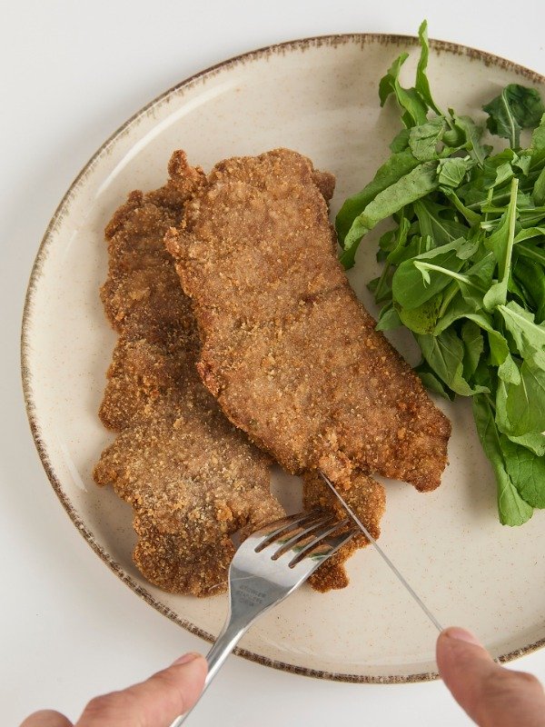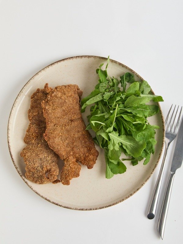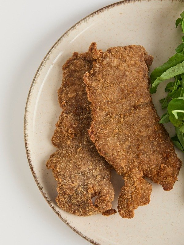 Carne vacuna (Bife de chorizo), pan rallado, harina, huevo, sal, pimienta, mostaza, ajo natural, perejil.